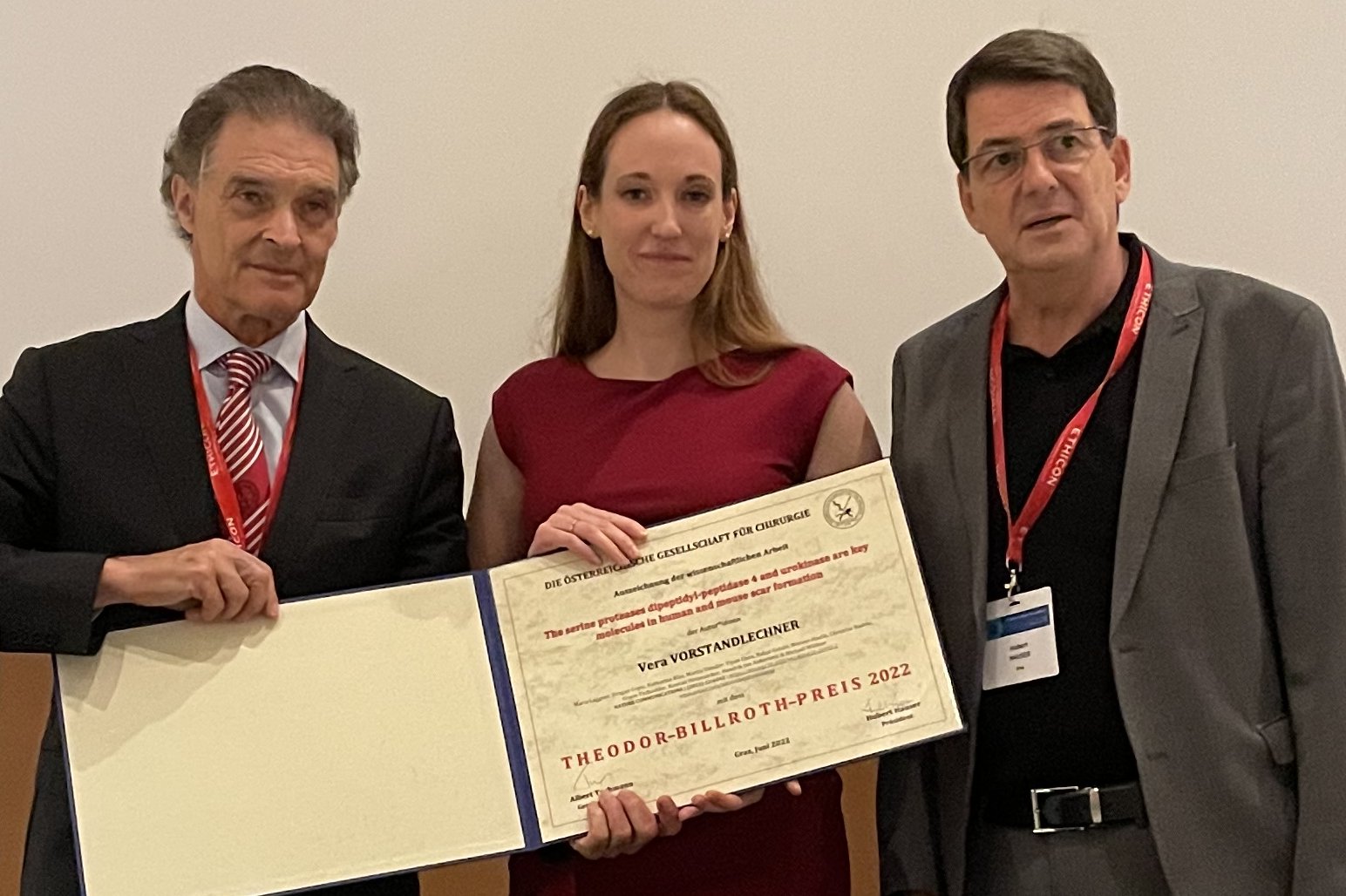 (Vienna, 12-07-2022) Vera Vorstandlechner from the Department of Plastic, Reconstructive and Aesthetic Surgery of MedUni Vienna received the award for her research, which focuses on the genetic landscape of hypertrophic scars and the identification of new therapeutic approaches.