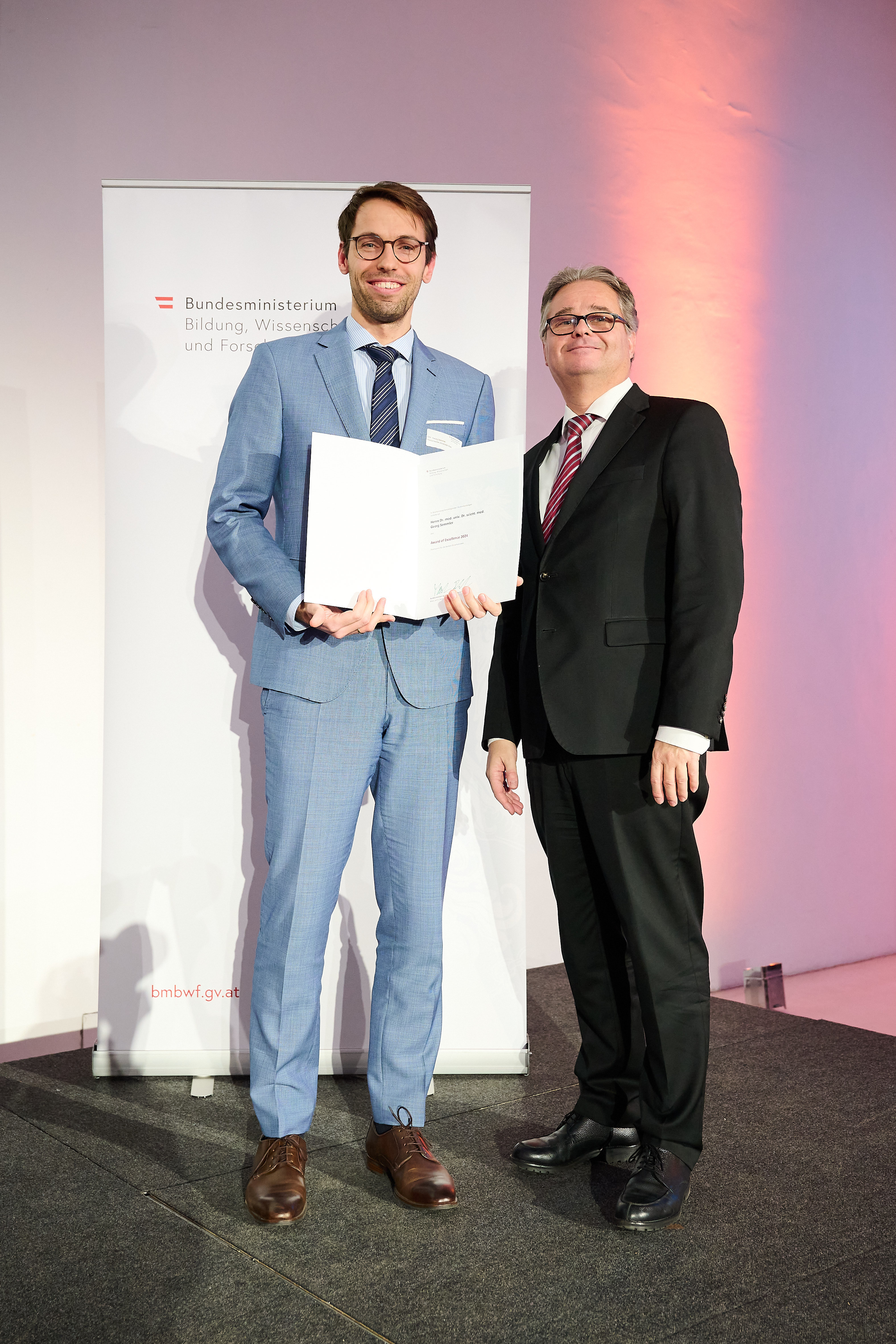 (Vienna, 11 December 2024) Georg Semmler and Alfredo Cristiano De Sá Fernandes have been presented with the Award of Excellence by the Ministry of Science for their outstanding dissertations at MedUni Vienna.