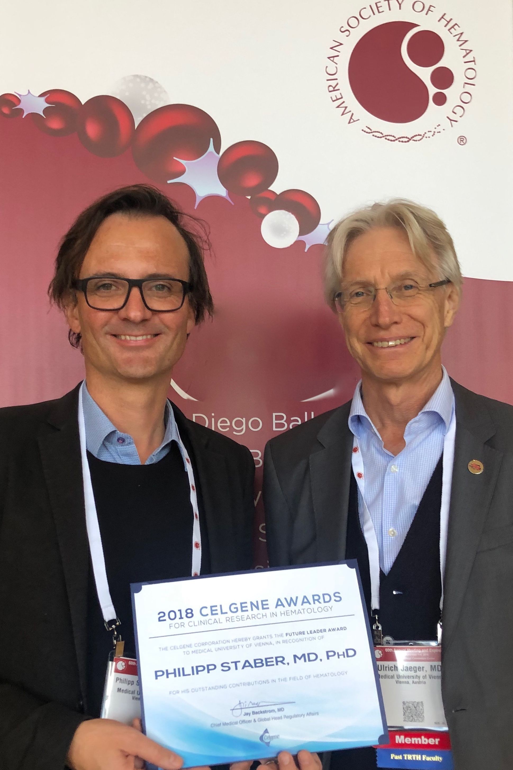 (Vienna, 17 December 2018) Haemato-oncologist Philipp Staber from the Division of Hematology and Hemastasology and member of the Comprehensive Cancer Center (CCC), MedUni Vienna/Vienna General Hospital, is the first European to have won the Celgene Future Leader Award. The prize is being awarded in honour of Staber's contribution to the development of functional precision medicine in the field of malignant diseases of the blood and lymphatic system. The $10,000 award was presented at the beginning of December at the 2018 Annual Meeting of the American Society of Hematology (ASH).