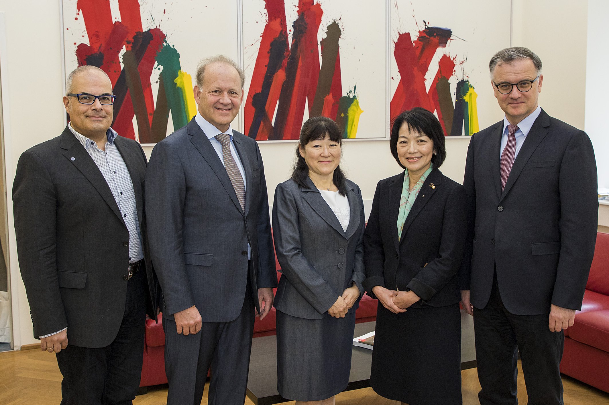 from left: Dr. Human Salemi (International Office), Prof. Andreas Moritz, Yuka Hiraizumi (Associate Professor), Dr. Miyuki Hashimoto (Professor at International Exchange Center), and Rector Prof. Markus Müller