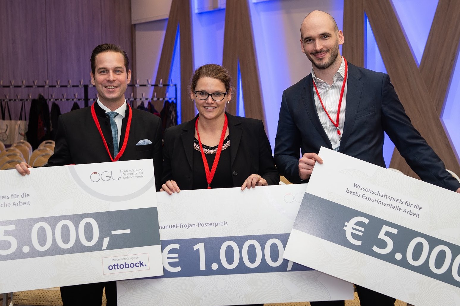 (Salzburg, 25 October 2018) At the annual meeting of the Austrian Society for Trauma Surgery in Salzburg, no fewer than three high-value prizes for outstanding scientific work were awarded to employees from the Division of Trauma Surgery at the Department of Orthopedics and Trauma Surgery. Stephan Frenzel won the Science Prize for the best clinical paper, Thomas Haider the Science Prize for the best experimental paper and Gerhild Thalhammer won the Poster Prize for this year's annual meeting.