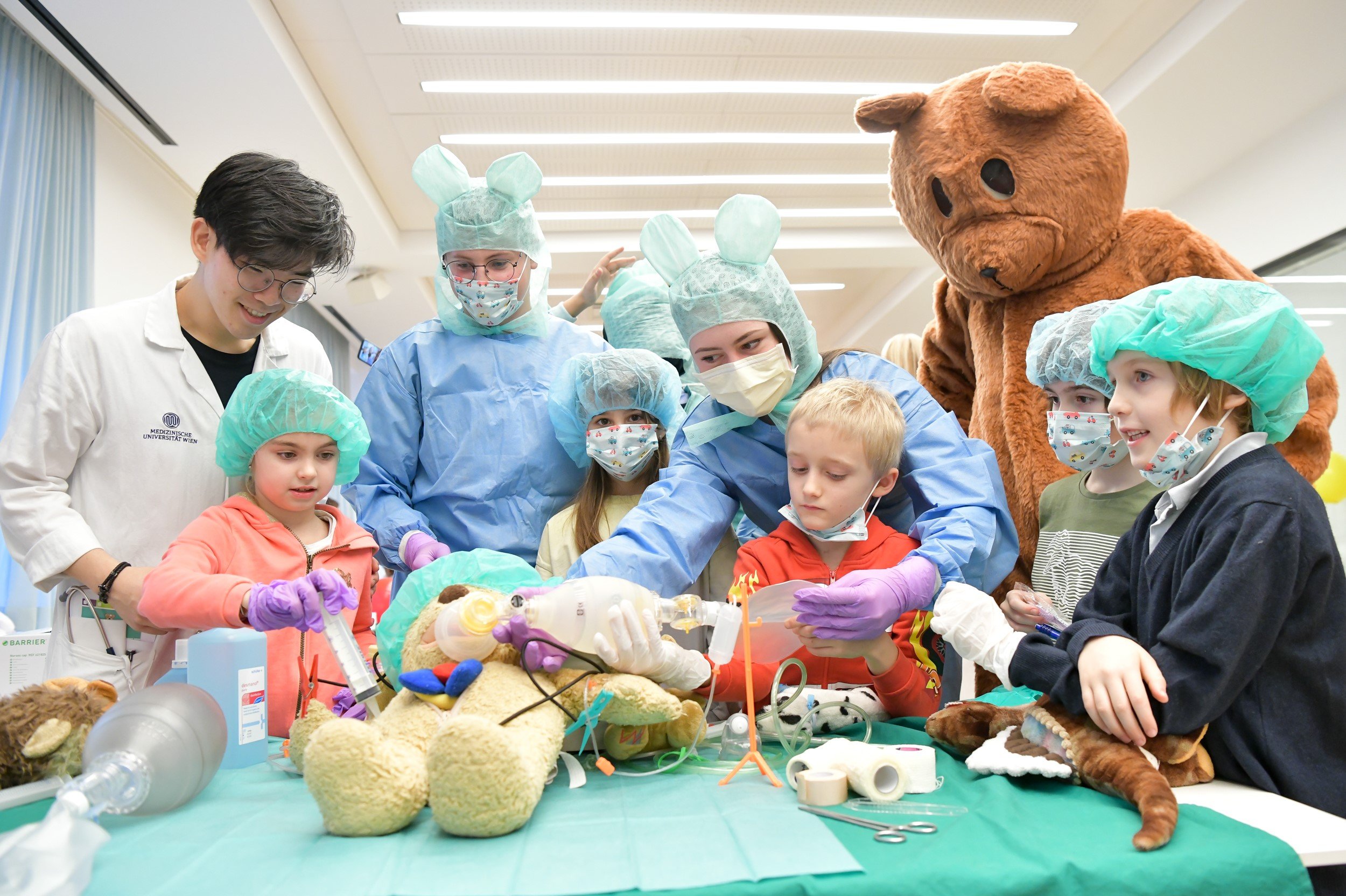 (Vienna, 16 December 2019) Today, hundreds of children came to the opening of the Teddy Bear Hospital in Vienna, bringing along their teddy bears, cuddly toys and dolls. The soft toys were examined, treated and even underwent surgery in the outpatient clinics, with the able assistance of the young "doctors". Even Medical Association President Thomas Szekeres and Anita Rieder, Vice Rector for Education of MedUni Vienna, were allowed to assist with x-ray examinations and operations. This is now the 19th time that Vienna Medical Association has run this event, which is a joint initiative between MedUni Vienna, the Austrian Medical Students' Association (AMSA), Vienna Medical Association, St John's Ambulance and the Academic Association of Austrian Pharmacists.