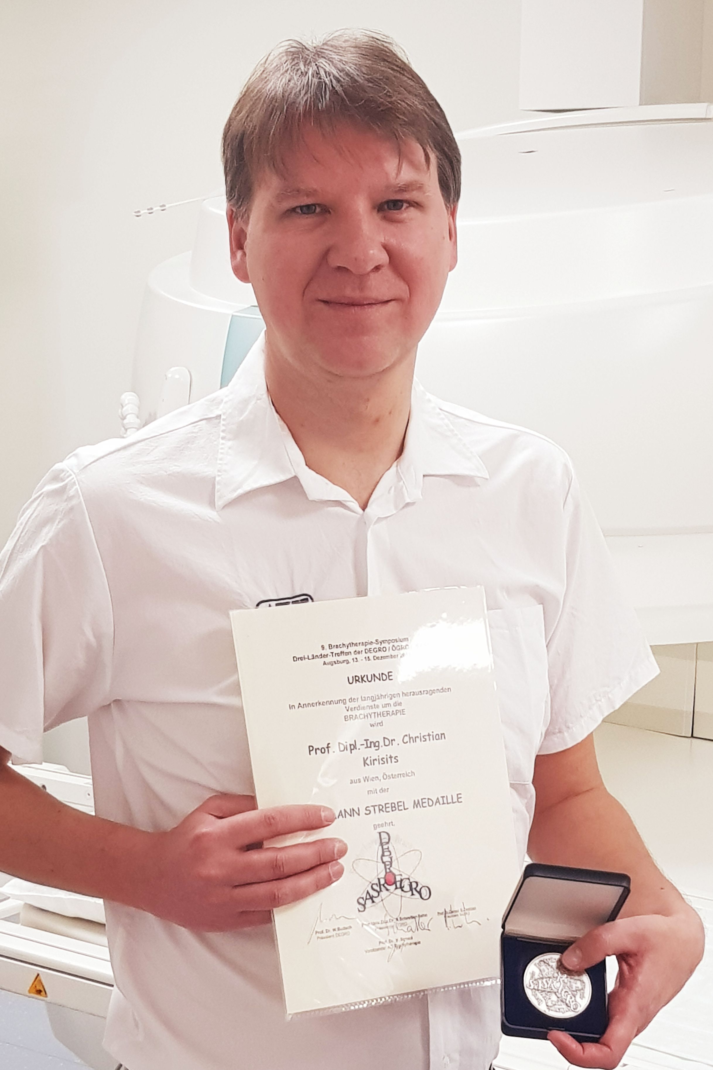 (Vienna, 10 January 2019) Christian Kirisits from MedUni Vienna's Department of Radiotherapy has been awarded the Hermann Strebel Medal in recognition of his many years of outstanding service in the field of brachytherapy within the German-speaking area.