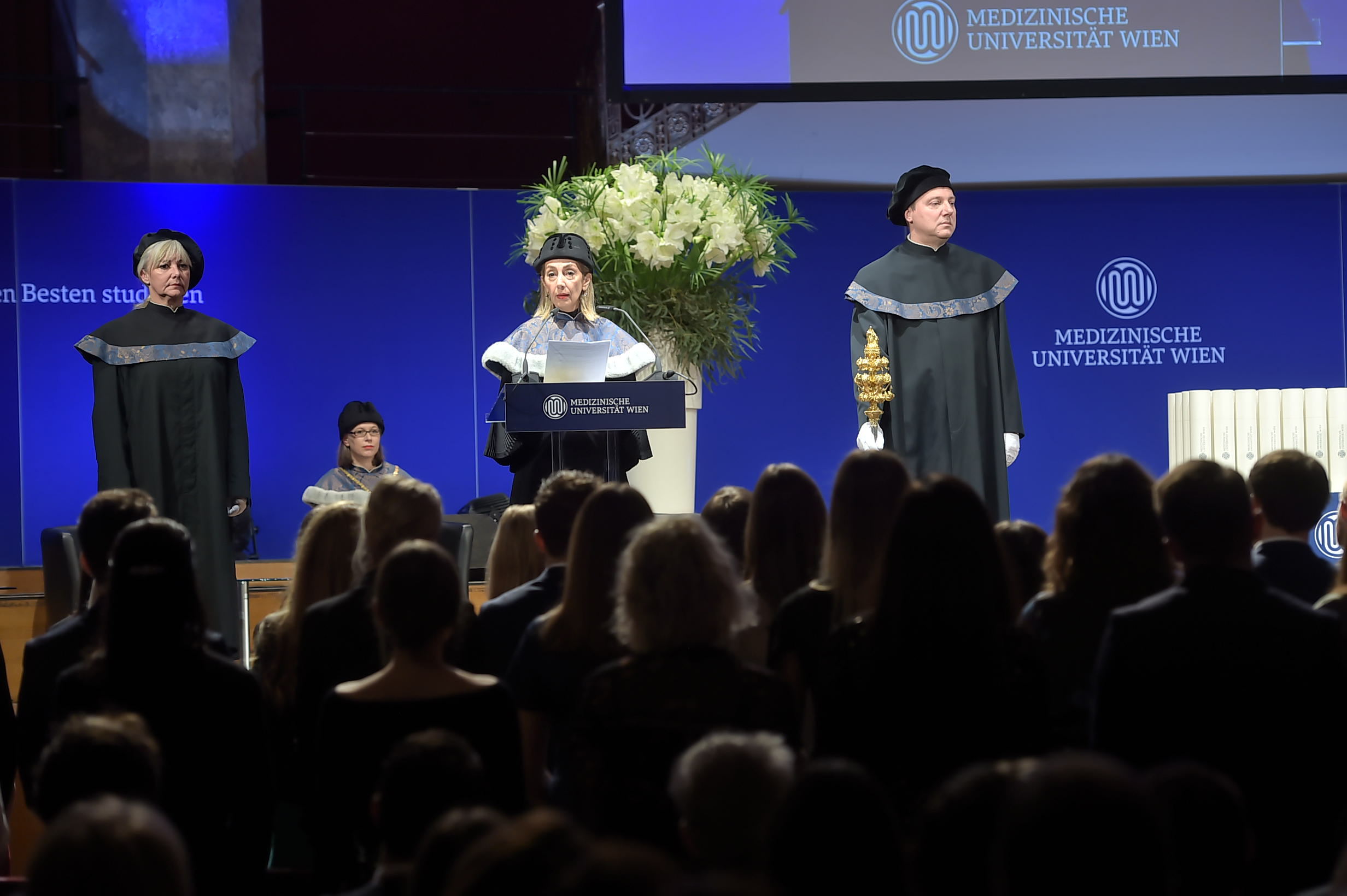 (Vienna, 28 November 2019) Today, 400 graduates from MedUni Vienna took their academic oath, watched by their families, friends and acquaintances. MedUni Vienna Rectors Markus Müller and the Vice-Rectors Michaela Fritz and Anita Rieder presented the degree certificates. During the last academic year (2018/19), a total of 626 future doctors and scientists completed their medical studies in Vienna.