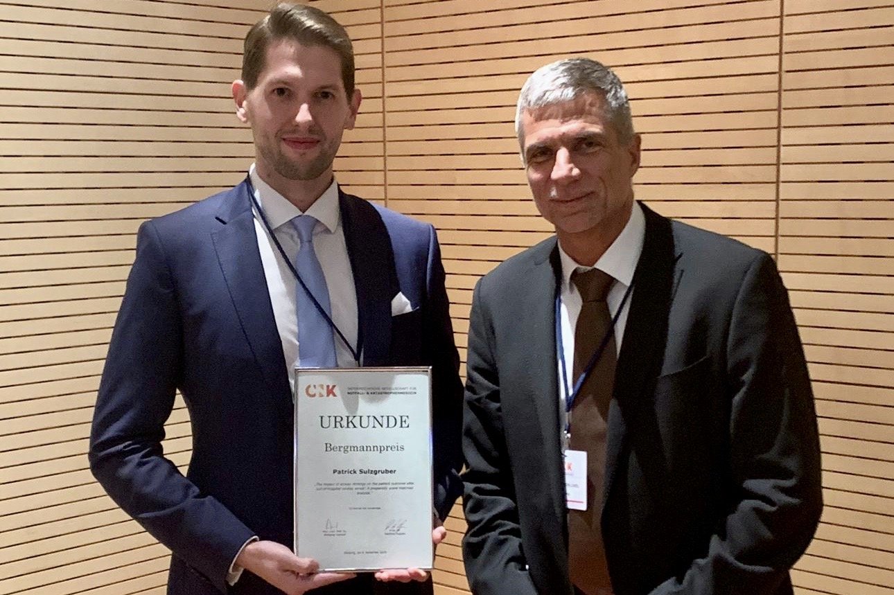 The Hans Bergmann Publication Prize is regarded as the most important Austrian prize in the field of emergency medicine research and it was awarded to Sulzgruber for his scientific paper entitled: "The impact of airway strategy on the patient outcome after out-of-hospital cardiac arrest: A propensity score matched analysis", which he produced in collaboration with Fritz Sterz and Raphael van Tulder from the Department of Emergency Medicine.