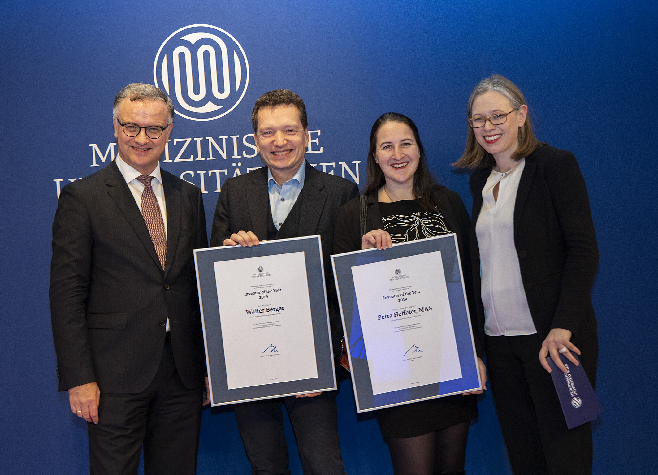 (Vienna, 14 January 2020) At its New Year reception, the Medical University of Vienna honoured Petra Heffeter and Walter Berger from the Institute of Cancer Research as "Inventors of the Year 2019". Together with scientists from the University of Vienna, they founded the spin-off "P4 Therapeutics", which is concerned with the development of new platinum-based anti-cancer drugs, especially further development of the highly promising agent Albuplatin.