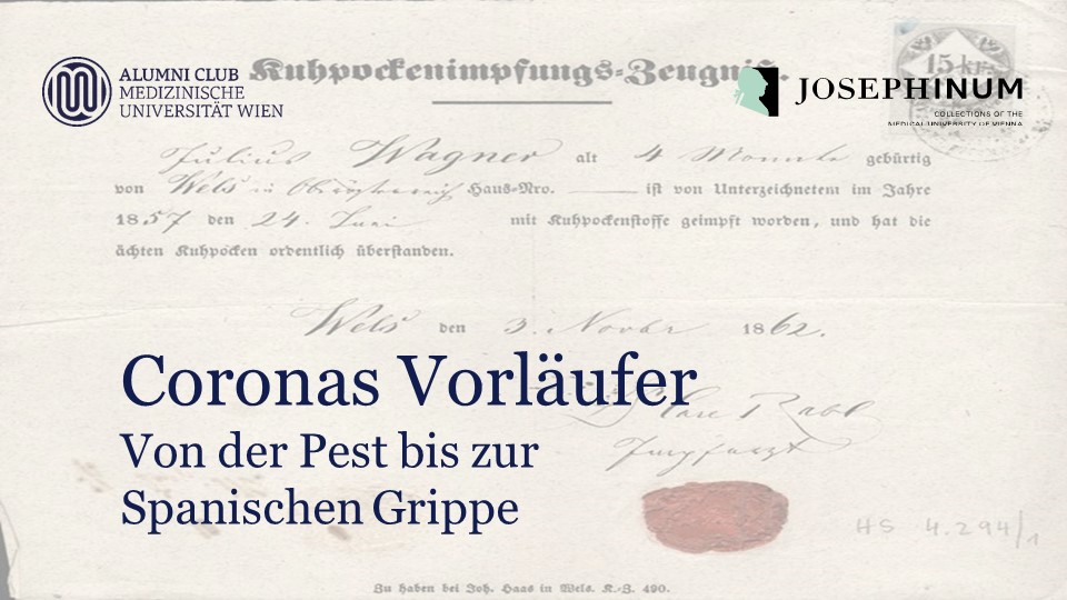 Am 1. Juni 2021 warfen Herwig Czech und Jakob Lehne einen Blick zurück auf Gesundheitskrisen vergangener Jahrhunderte von der Pest, über Cholera bis zur sogenannten Spanischen Grippe von 1918. Mit Christiane Druml sprachen sie außerdem über die Spuren, die diese Ereignisse noch im heutigen Umgang mit Pandemien hinterlassen haben.