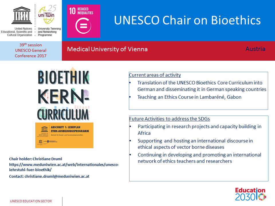 The UNESCO Chair on Bioethics of the Medical University of Vienna with Christiane Druml as chair holder