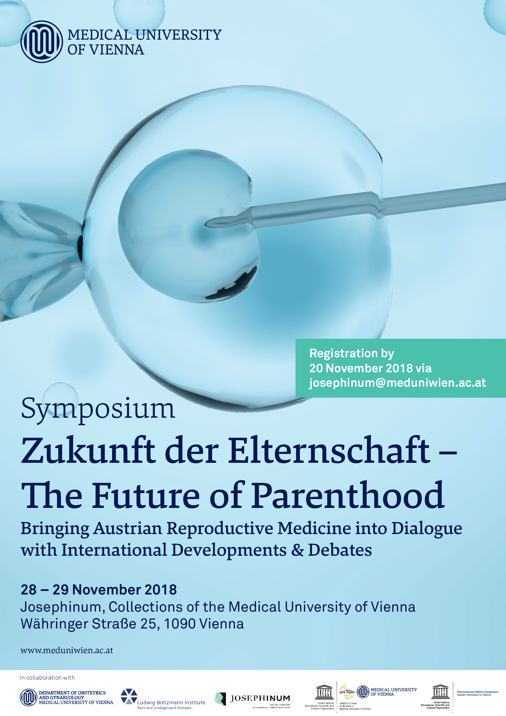 This workshop was organized by the Department of Obstetrics and Gynecology/Medical University of Vienna, the UNESCO Chair on Bioethics, the Josephinum – Ethics, Collections and History of Medicine at the Medical University of Vienna, the Ludwig Boltzmann Institute for Rare and Undiagnosed Diseases and the Austrian Commission for UNESCO.