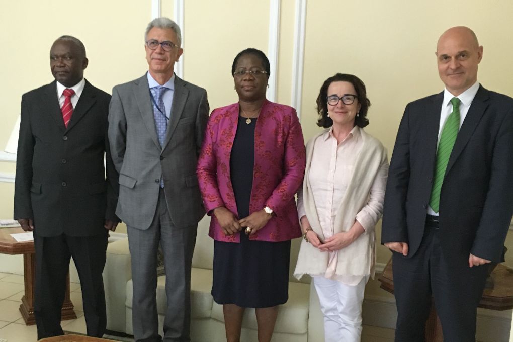 - Libreville, 13. April 2016: Treffen mit der gabunischen Ministerin Denise Mekamne (Ministre de l’Enseignement Supérieur et de la Recherche Scientifique) zur Vorstellung der zukünftigen Kooperationspläne mit der Partnerorganisation CERMEL Lambaréné, sowie mit Vincenzo Fazzino, Vertreter der UNESCO Gabun, und Pierre-Blaise Matsiegui, Präsident des Nationalen Bioethikkomitees von Gabun
