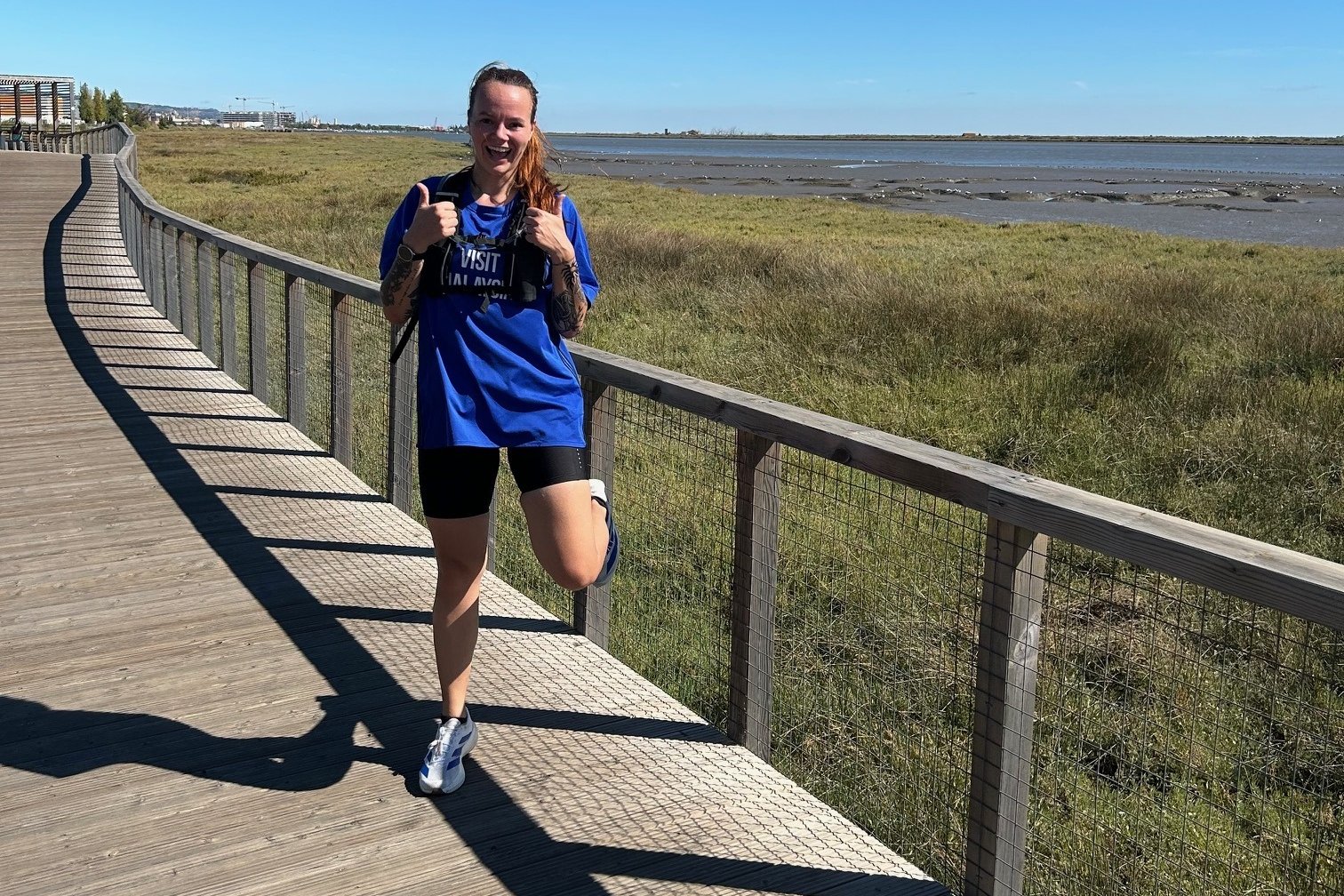 Nicht nur am Uni-Campus Altes AKH wurde am 4. Oktober für den guten Zweck gelaufen, auch beim Distant Run waren die Teilnehmenden eine ganze Woche lang aktiv. Viele schnürten ihre Laufschuhe, egal wo sie gerade waren. So kamen nicht nur in Österreich, sondern weltweit Kilometer zusammen, etwa von Sophia von Amgen (Foto), die ihre Runden in Portugal drehte.