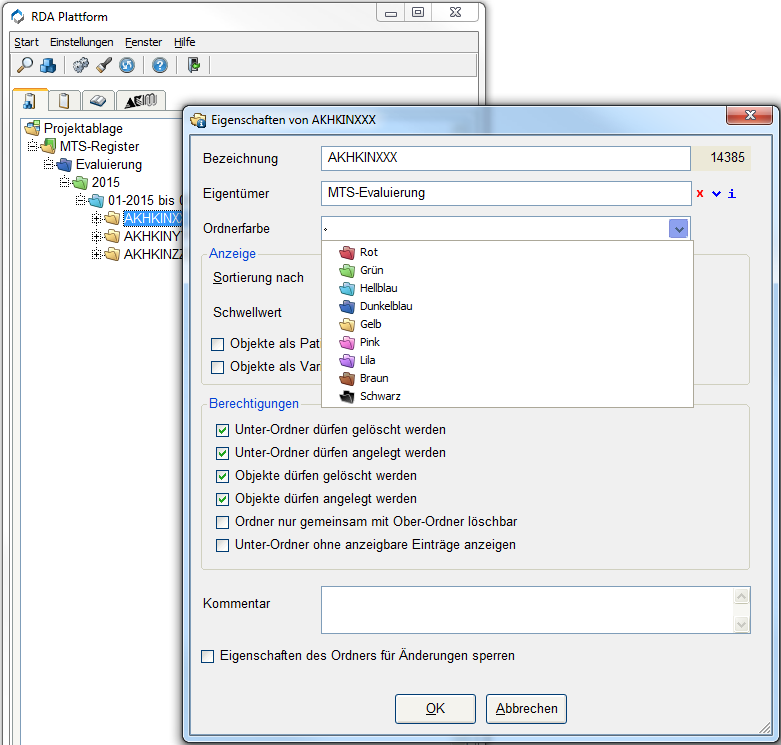 Im DropDown-Feld neben „Ordnerfarbe“ kann die gewünschte Farbe ausgewählt und über den Button „OK“ bestätigt werden.