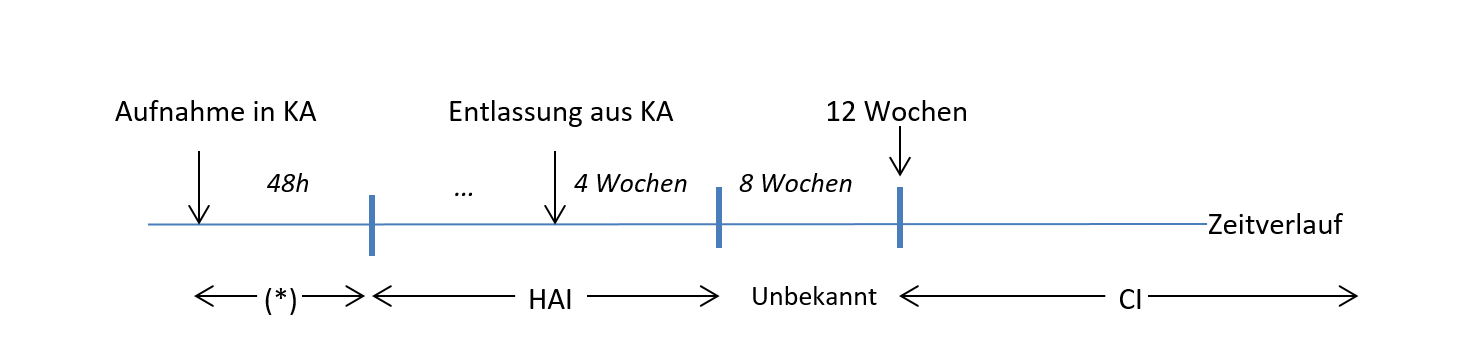 Bitte beachten: Wenn eine andere, als die aktuelle, Krankenanstalt, die Infektionsquelle darstellt, werden Coronavirus-Krankheiten-2019 erst ab Tag 8