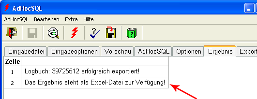...das folgende Ergebnisfenster erscheint. Das exportierte Logfile steht dann im Excel zur Verfügung.