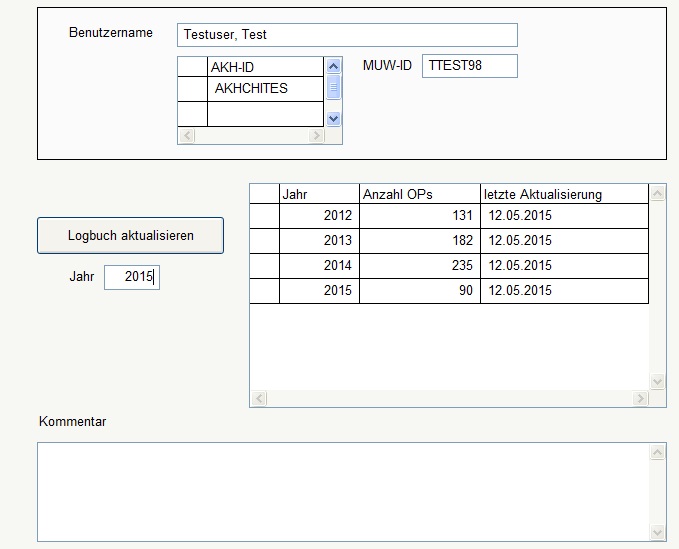 In dem Formular "Übersicht" erhalten Sie eine Auflistung der Jahre zu denen Logbücher angelegt wurden, mit der Anzahl der Operationen in diesem Jahr und das Datum der letzten Aktualisierung.