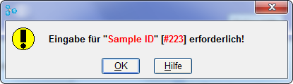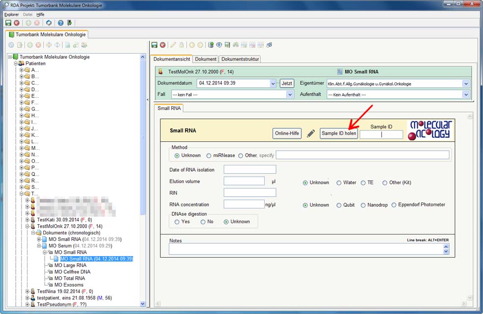 Da Unterdokumente jeweils dieselbe Sample ID wie das Oberdokument bekommen, muss der Button „Sample ID holen“ gedrückt werden, bevor das Dokument gespeichert werden kann.