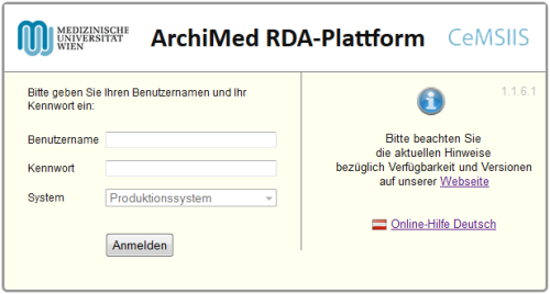 Die englische Version des WebClients erreichen Sie unter https://archimed-rda.meduniwien.ac.at?lang=en&pid=1088