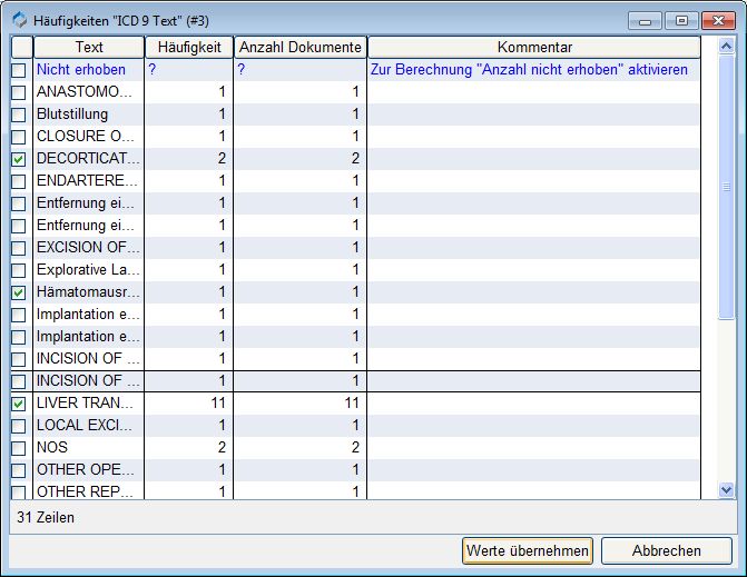 Unter Häufigkeiten können Sie sich die Ausprägungen der Auswahlliste anzeigen lassen und die gewünschten auswählen.