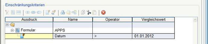Geben Sie die gewünschte Datumseinschränkung ein. In unserem Beispiel ist es der 01.01.2012.