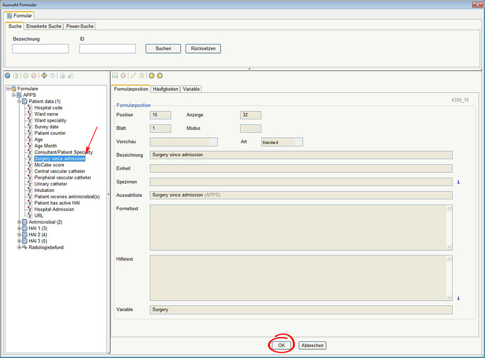 Nachdem Sie das Formular gesucht, die erste gewünschte Variable markiert und die Auswahl mit "OK" bestätigt haben, können Sie die Erweiterung hinzufügen.