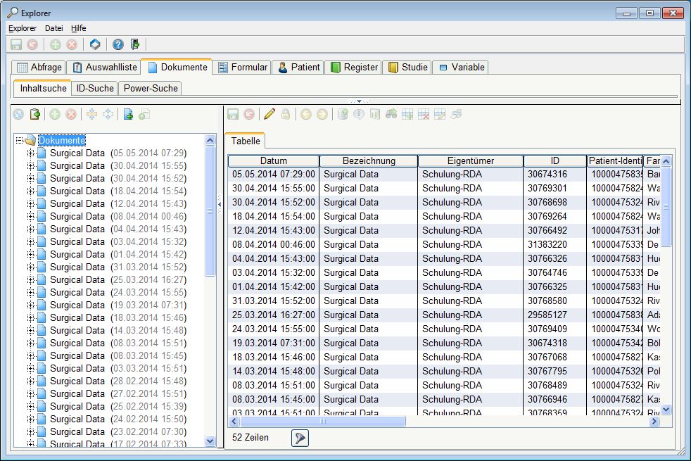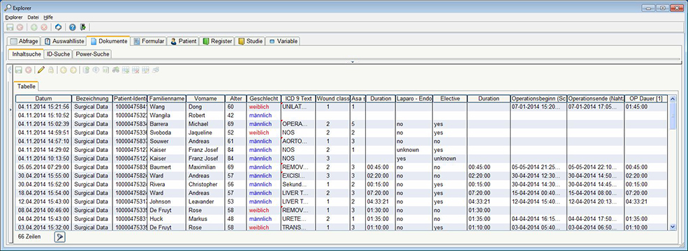 Mit der Dokumentsuche können Sie wie mit der Abfrage bestimmte Dokumente auswählen und Daten exportieren.