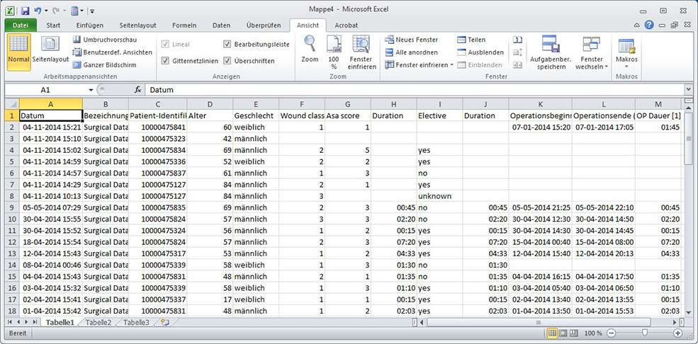 Die ausgewählten Variablen werden in der Ergebnistabelle als Spalten angereiht und die Werte angezeigt.