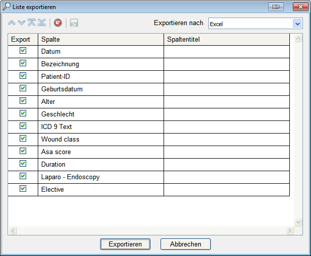 Sollen die Daten ins Excel exportiert werden, klicken Sie mit der rechten Maustaste auf Dokumente > Export. Sie können die Spalten anklicken, die Sie in das Excel übernehmen wollen.