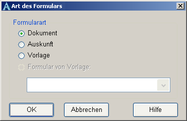 - Vorlage: Dokumenation/Auskunft beim Erstellen der Vorlage festgelegt; gewünschte Vorlage aus Liste wählen