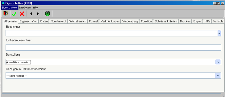 Die Themen im Eigenschaften-Fenster sind abhängig vom Variablentyp, in denen die Eigenschaften des zuvor markierten Feldes zu sehen und auch zu ändern sind.