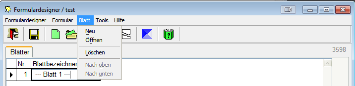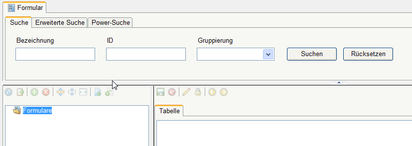 Im Formulardesigner werden Formulare und die dazugehörigen, untergeordneten Blätter angelegt.