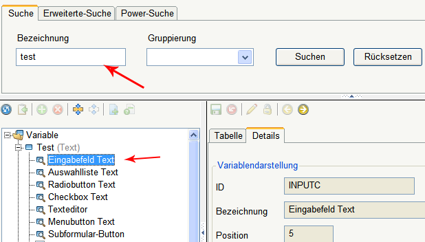 Variablen für Formular aus Explorer unter dem Reiter Variable
