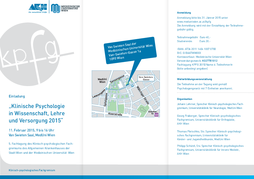 5. Fachtagung des Klinisch-psychologischen Fachgremiumsdes Allgemeinen Krankenhauses der Stadt Wien und der Medizinischen Universität Wien