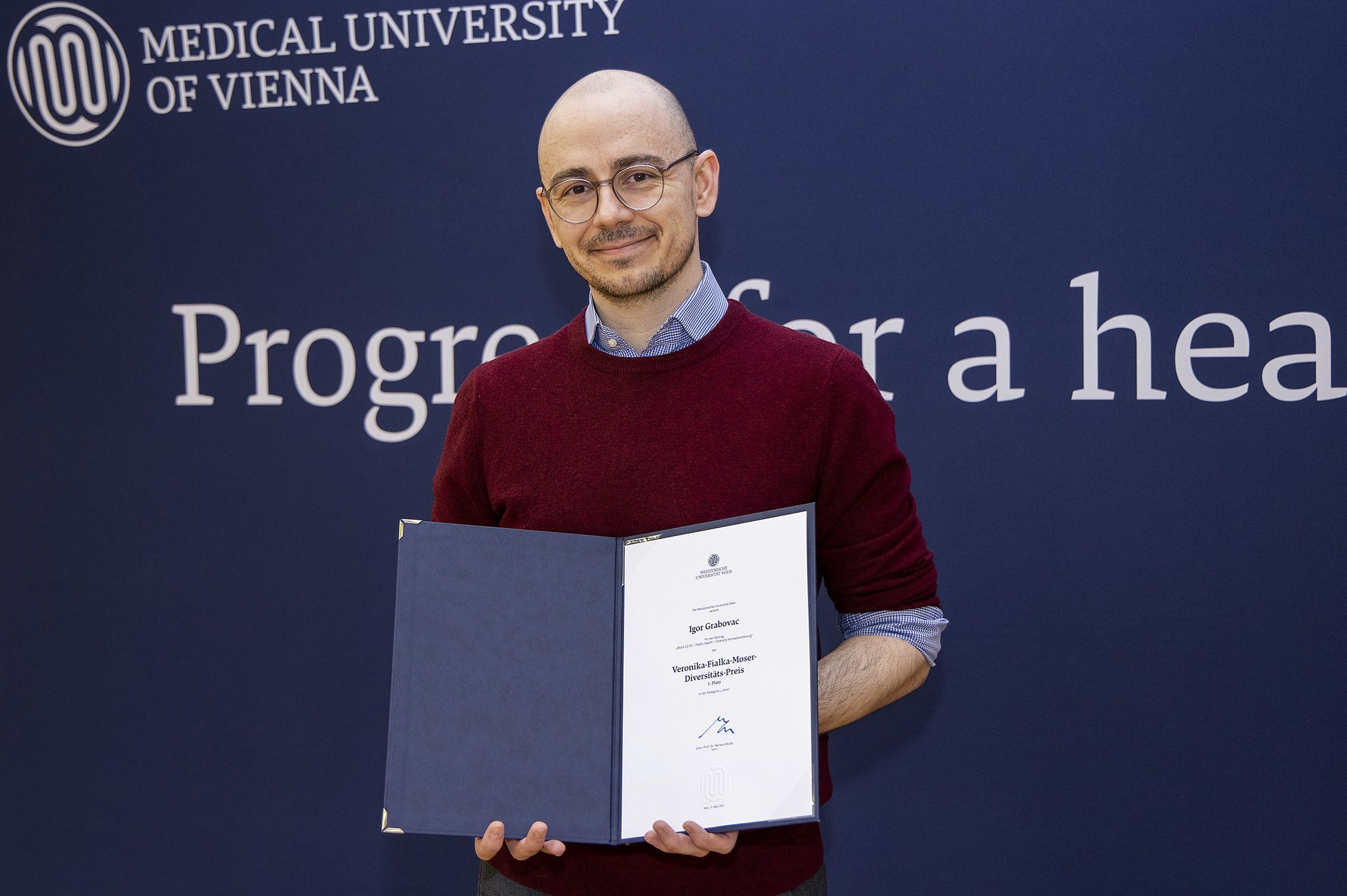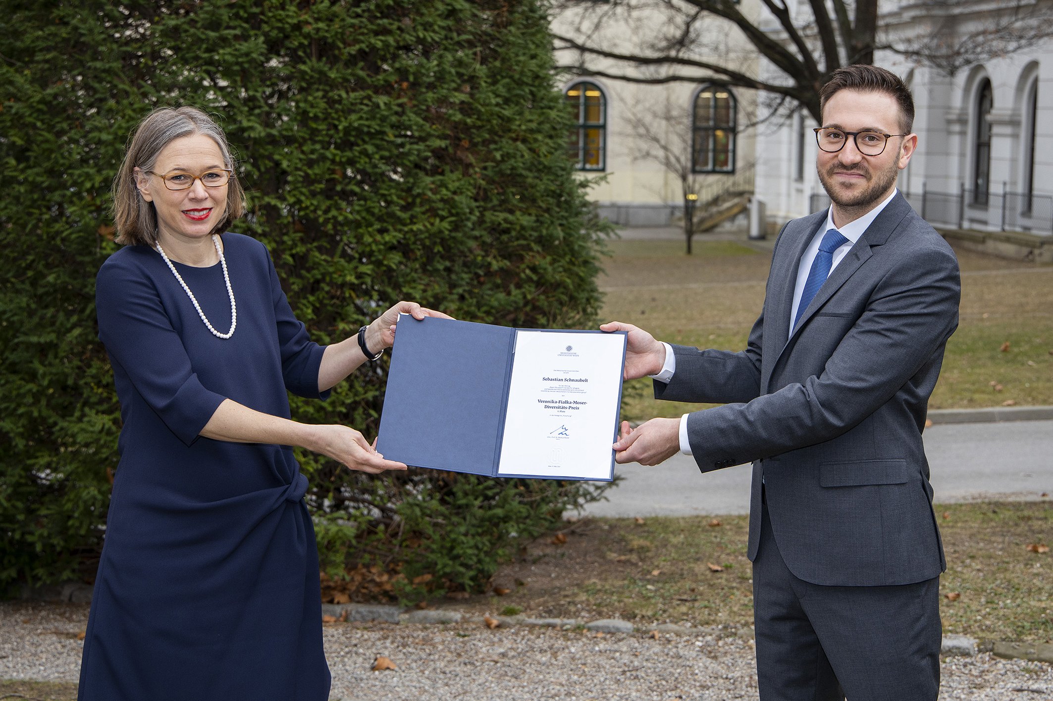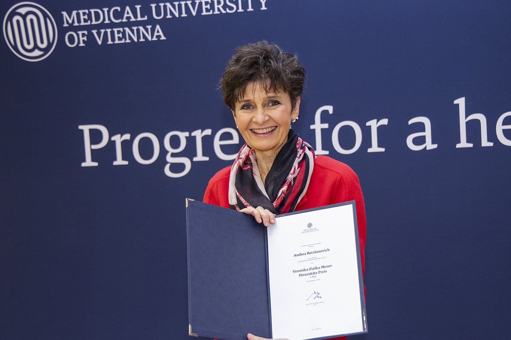 The Medical University of Vienna awards the Veronika Fialka-Moser Diversity Prize to consciously encourage the discussion about diversity within its establishment. The prize recognises contributions in this area and raises awareness about the issue of diversity. It is named after Veronika Fialka-Moser, Professor of Physical Medicine, in recognition of her many years of service in the field of Diversity Management at MedUni Vienna.