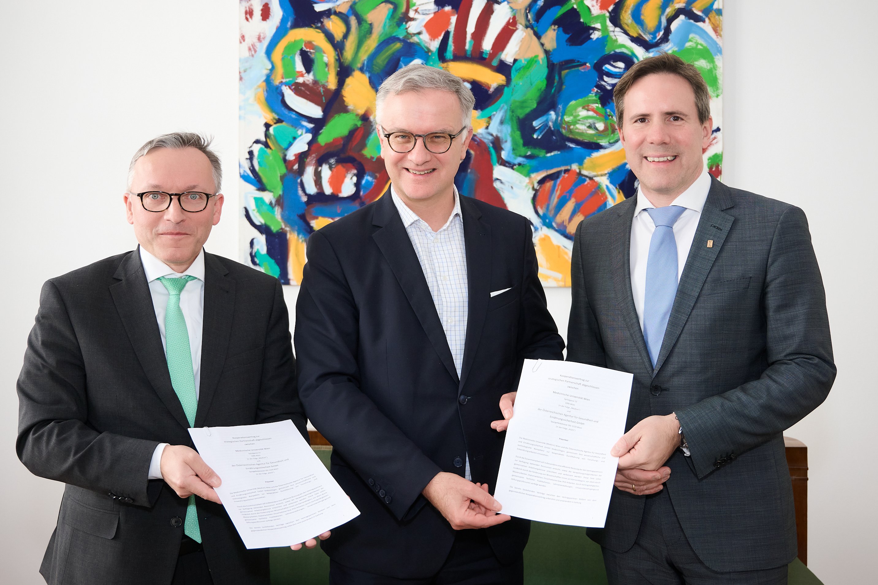 From left to right: Anton Reinl (AGES), Markus Müller (MedUni Vienna) and Johannes Pleiner-Duxneuner (AGES) at the signing of the cooperation agreement