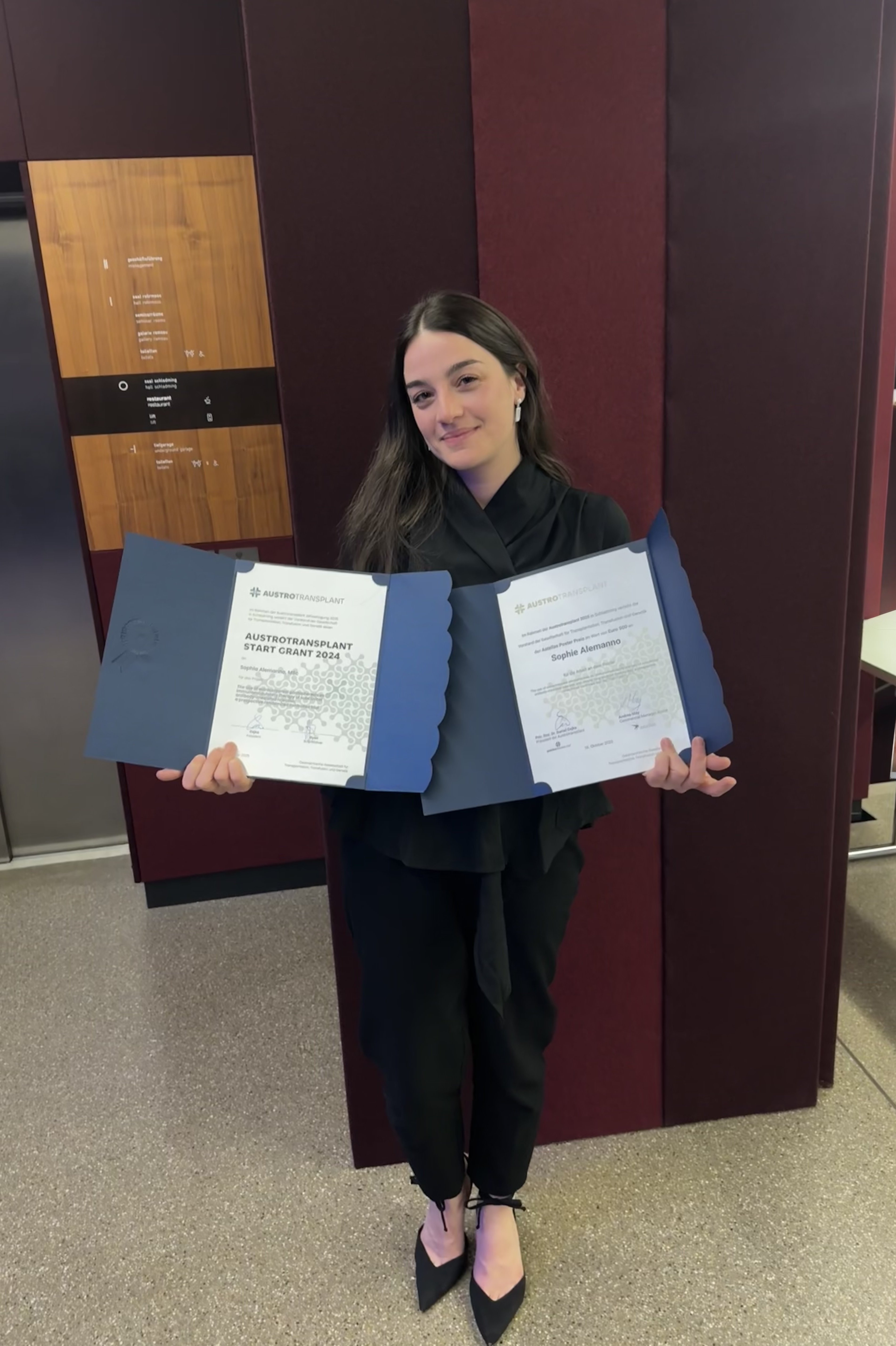The Austrotransplant Clinical Science Award 2025 was presented to Jule Dingfelder (Clinical Division of Transplantation) for her outstanding work published in 2025 in the renowned journal Liver Transplantation: "Validation of mitochondrial FMN as a predictor for early allograft dysfunction and patient survival measured during hypothermic oxygenated perfusion."