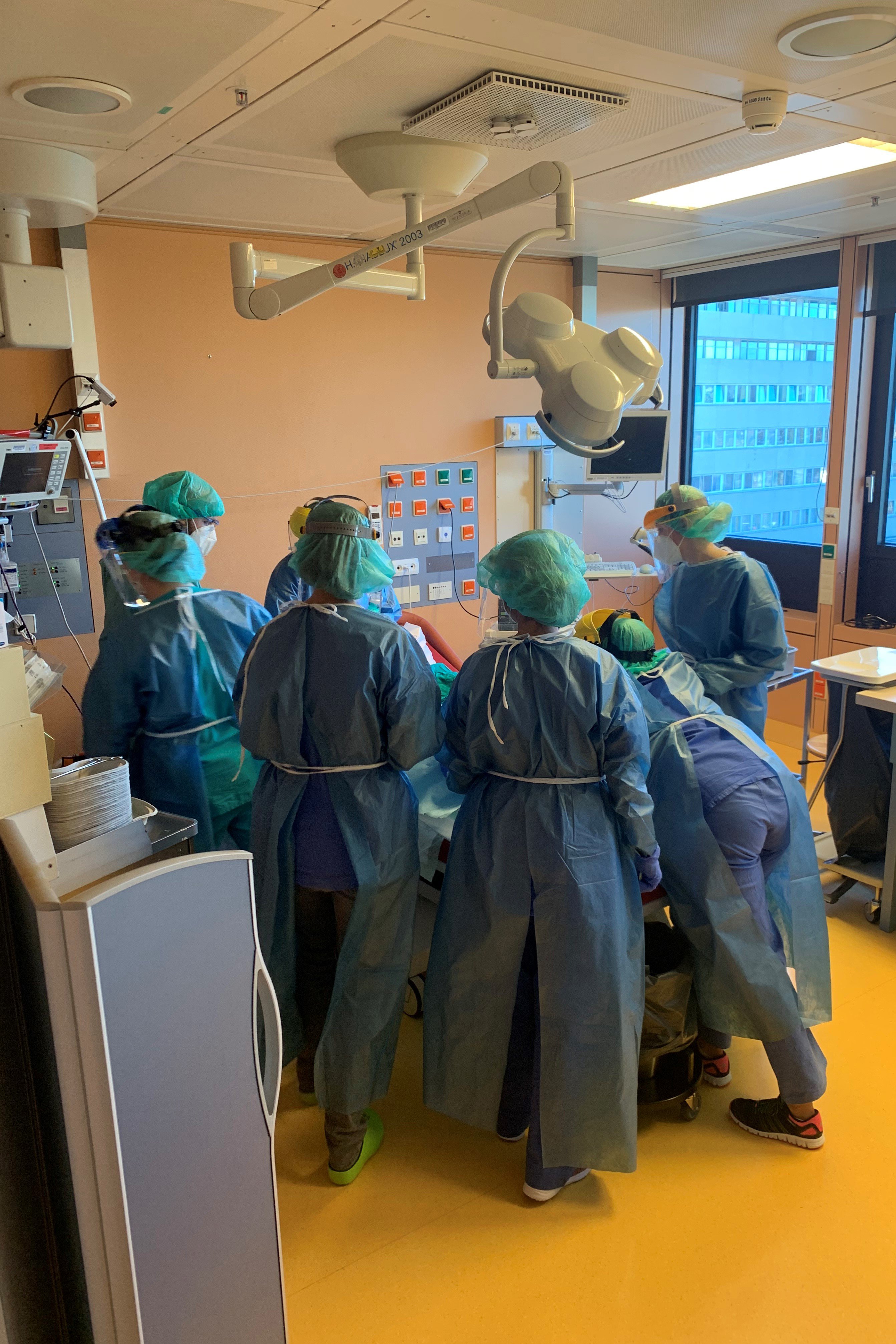 Acute, unforeseeable situations, which are easy to practice using high fidelity, were simulated in this year’s training course. The individual steps of the COVID-19 precautions were practised, including donning and doffing protective clothing and separating patient streams (potentially infectious versus non-infectious) in an acute situation. The participating doctors, midwives and nursing staff were immersed in the acute event and had to overcome the emergency situation step-by-step under the extraordinary prevailing conditions.