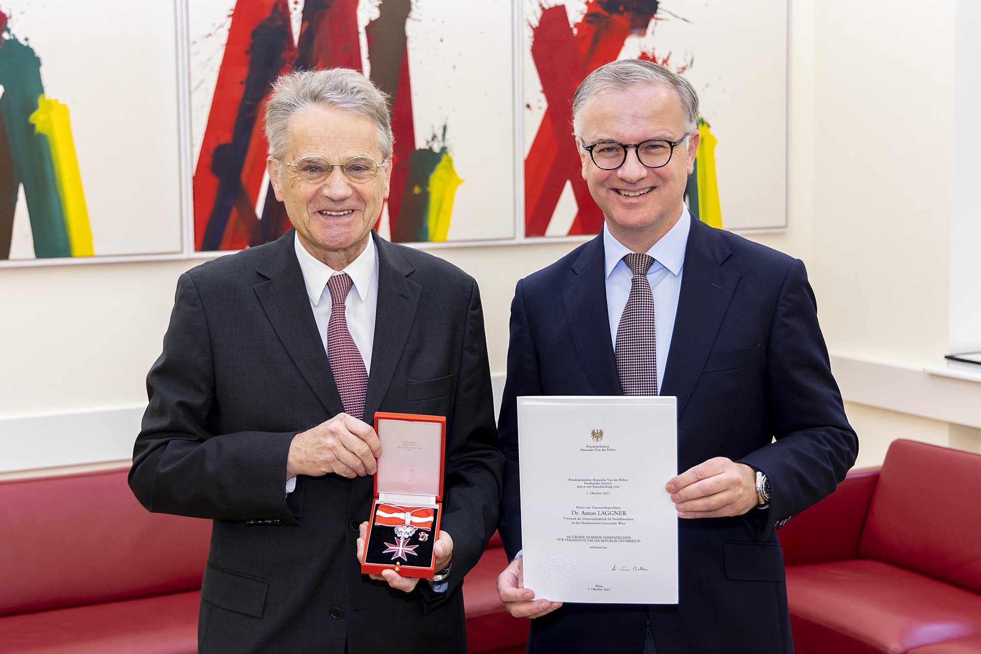 (Vienna, 18 November 2021) Anton Laggner, Professor Emeritus of Emergency Medicine at MedUni Vienna, has been awarded the Grand Decoration of Honour in Silver for services to the Republic of Austria. Laggner was honoured for his services to emergency medicine in Austria.