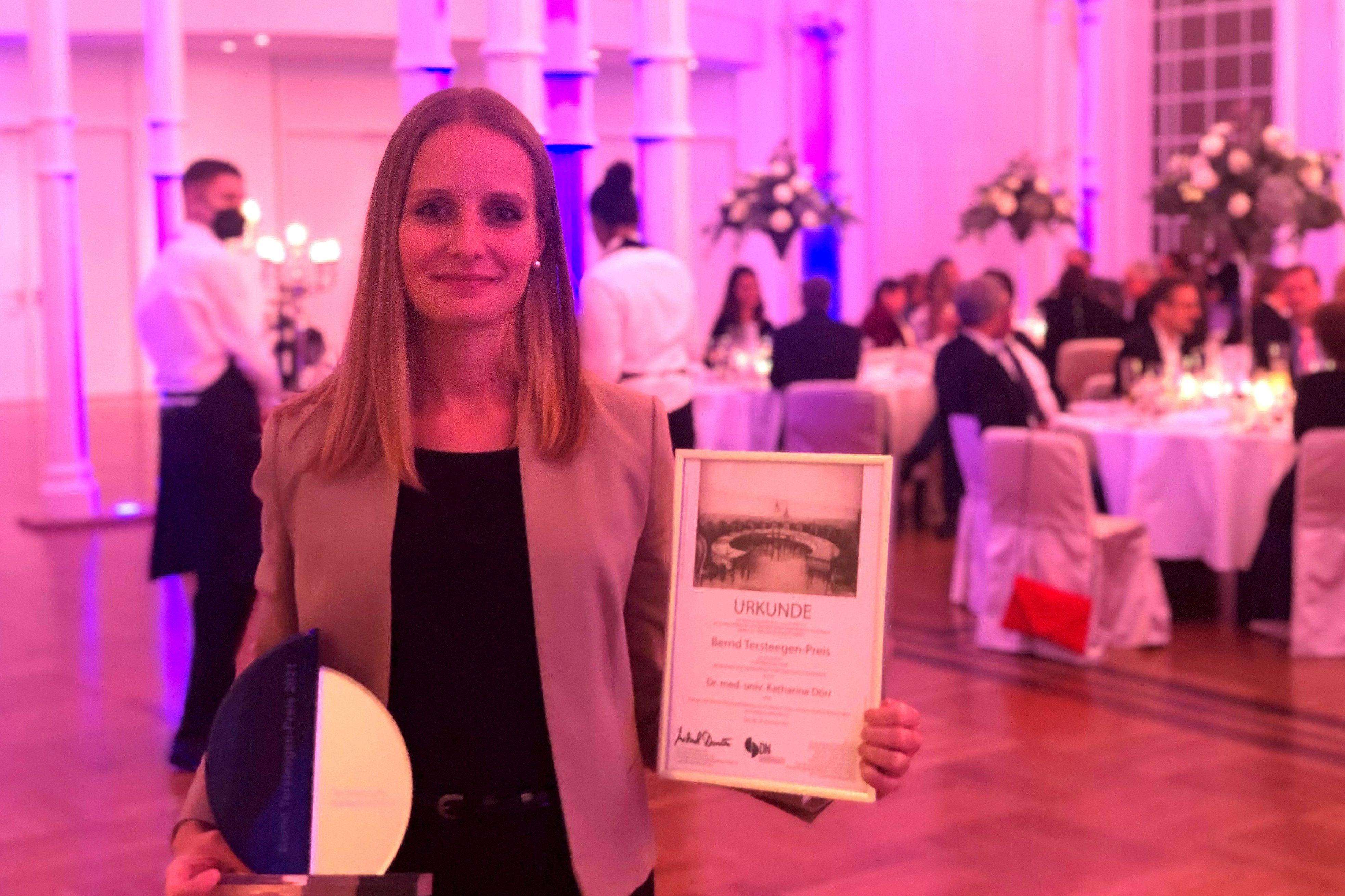 (Cologne, 29 November 2021) The Association of German Kidney Centres has awarded the Bernd Tersteegen Prize 2021 to Katharina Dörr, an internist at the Division of Nephrology and Dialysis of the Department of Medicine IIII at MedUni Vienna and University Hospital Vienna, for her study titled "Randomized Trial of Etelcalcetide for Cardiac Hypertrophy in Hemodialysis".