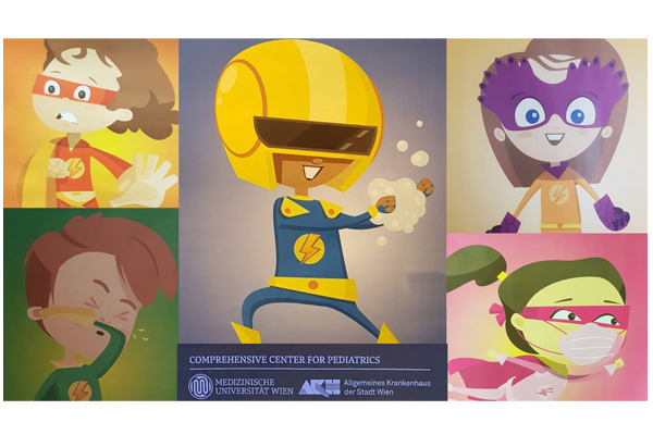 CARTOON is based on comic book superheroes, that were illustrated by Philipp Steinbauer from the University Clinic for Pediatrics and Adolescent Medicine and identified as characters with whom children can identify: Hero of the Distance, Captain Soapy Hands, Do not Touch Tina, Mister Sneeze and Flying Maskup Mona provide role models for the children. The superheroes accompanied the children throughout the entire programme, which consisted of five lessons: hand hygiene, sneezing etiquette, mask-wearing, social distancing, and theoretical knowledge about the coronavirus.
