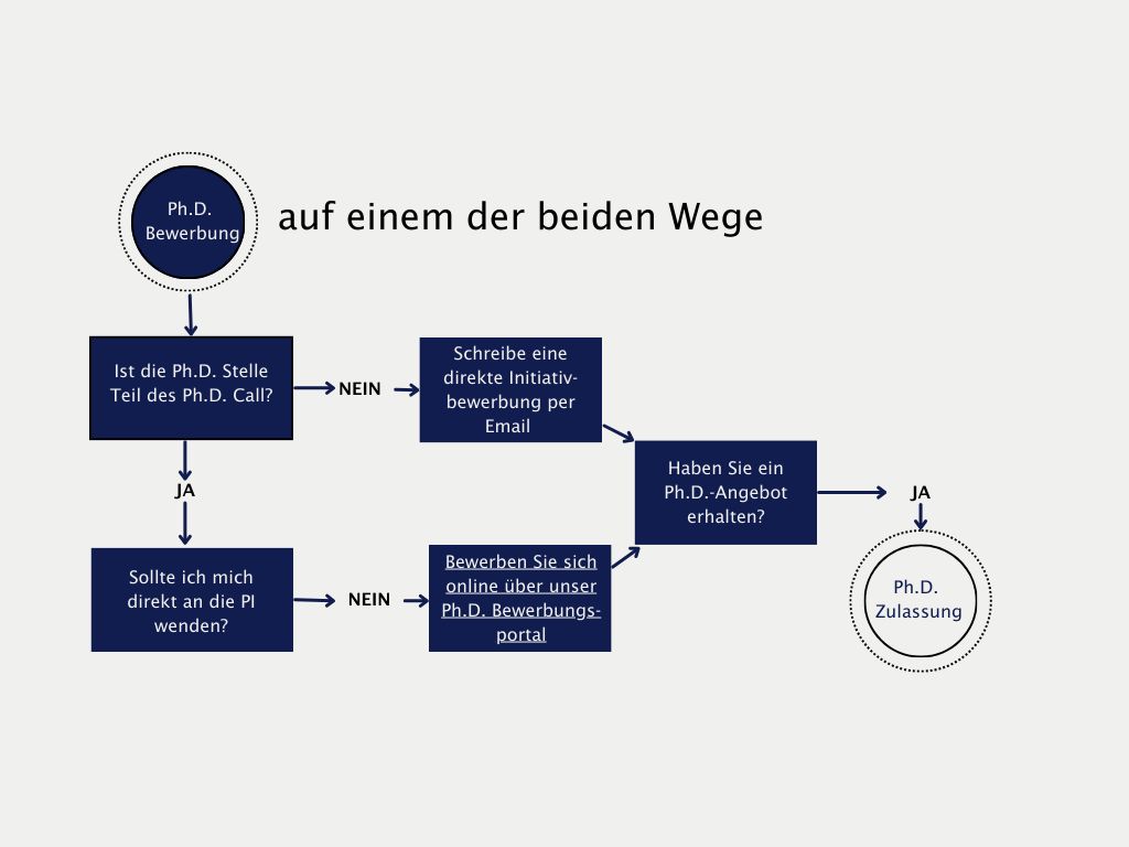 - Sie bewerben sich mit einer Initativbewerbung direkt bei Ihrer bevorzugten Betreuer:in per Email, wenn diese nicht an dem aktuellen PhD Call teilnimmt.