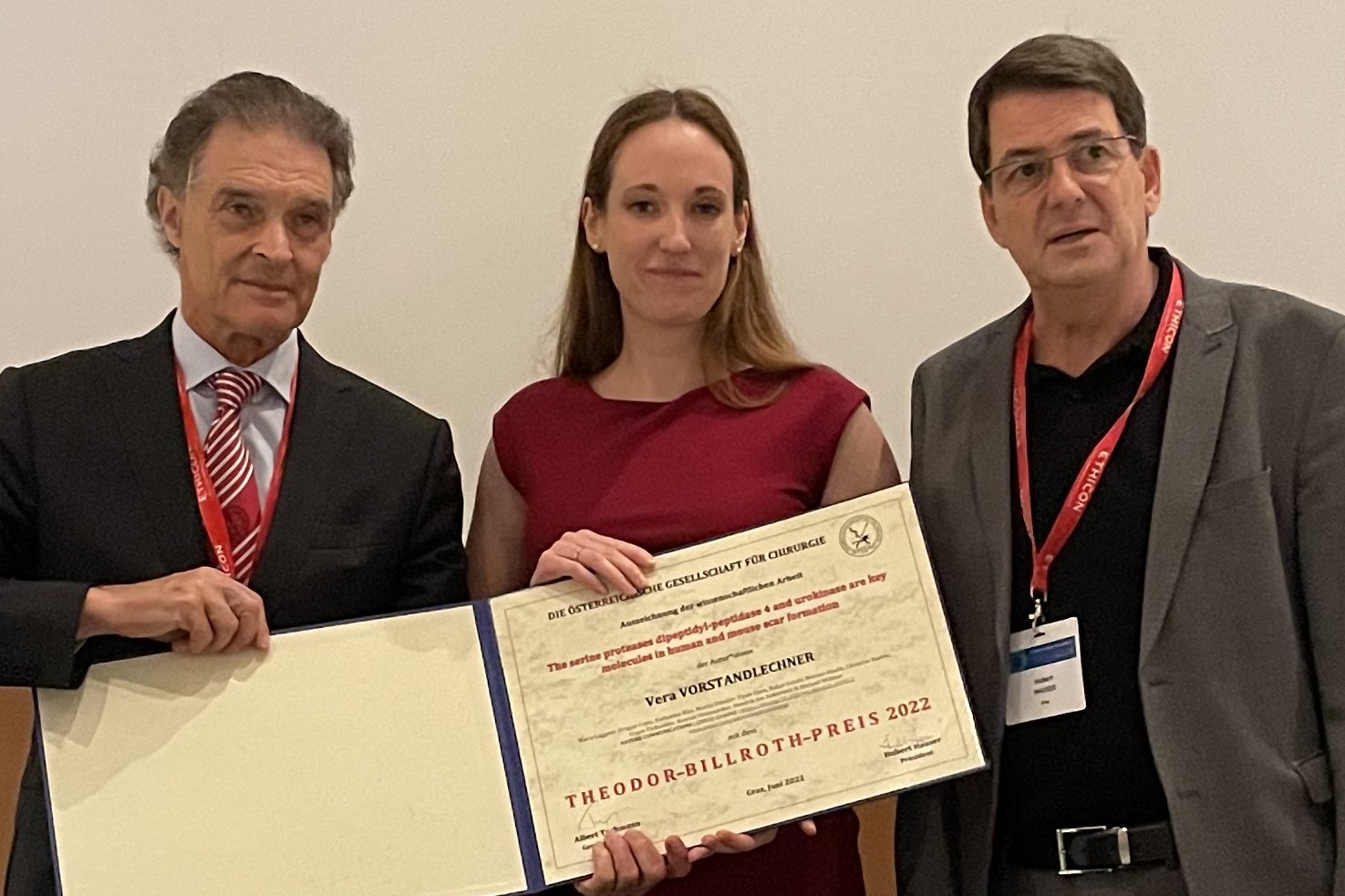 (Wien, 12-07-2022) Vera Vorstandlechner von der Universitätsklinik für Plastische, Rekonstruktive und Ästhetische Chirurgie der MedUni Wien wurde von der Österreichischen Gesellschaft für Chirurgie mit dem Theodor-Billroth-Preis für ihre Forschungsarbeit ausgezeichnet, die sich mit der genetischen Landkarte hypertropher Narben und der Identifikation neuer Therapie-Ansätze beschäftigt.