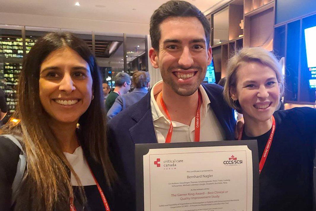 Das Critical Care Canada Forum in Toronto ist eine führende internationale Konferenz, die Expert:innen der Intensivmedizin zusammenbringt, um innovative Forschung, bewährte klinische Praktiken und zukunftsweisende Ansätze in der Patient:innenversorgung zu präsentieren. Der dort verliehene Garner King Award, benannt nach einem Pionier der kanadischen Intensivmedizin, würdigt sowohl innovative Forschung als auch außergewöhnliche klinische Leistungen. Jährlich wird der Award an eine Einzelperson oder ein Team verliehen, das durch wissenschaftliche Exzellenz und bedeutende Fortschritte in der Patient:innenversorgung hervorsticht.