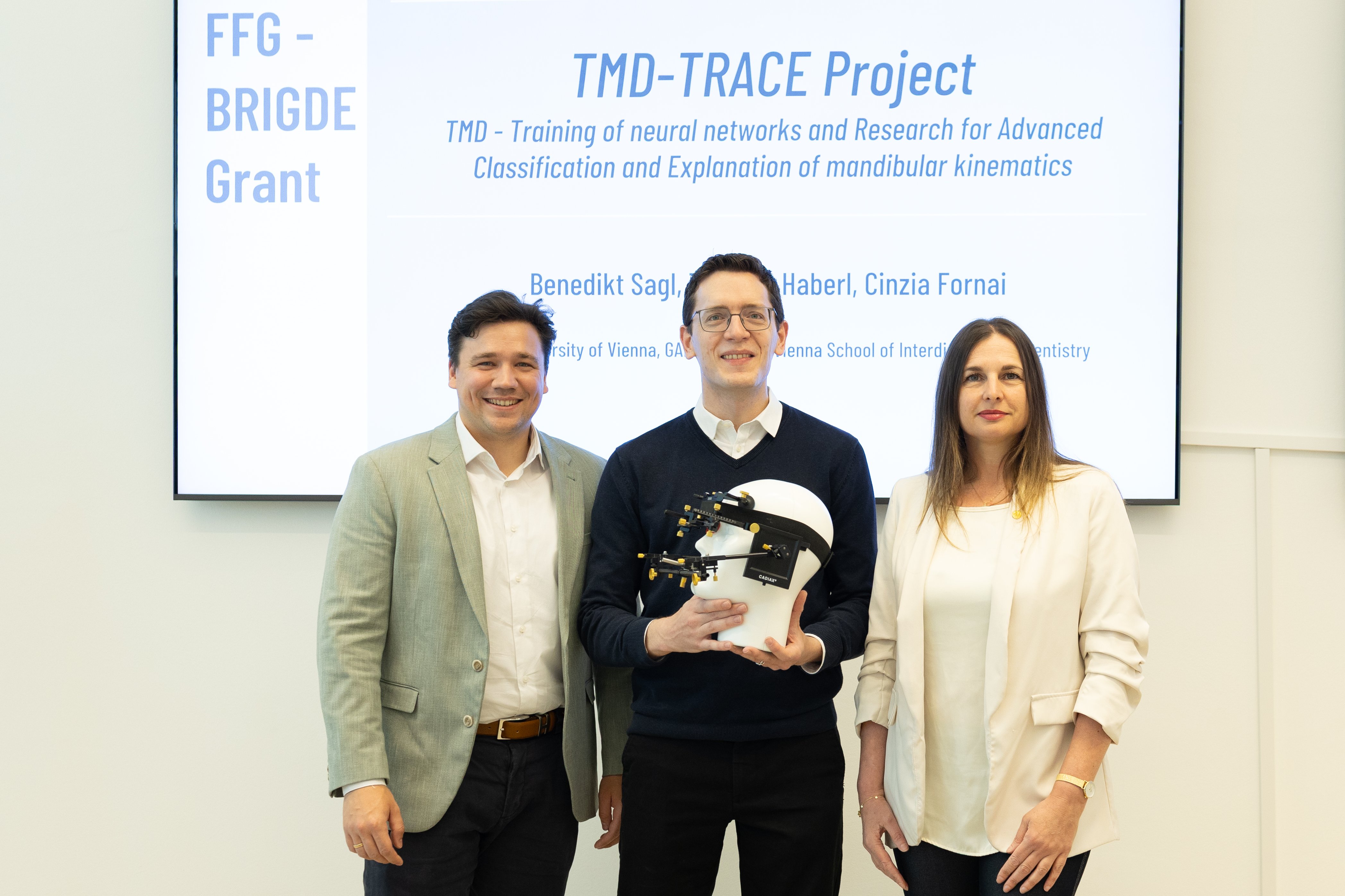 (Wien, 05-06-2025) Die Österreichische Forschungsförderungsgesellschaft FFG unterstützt im Rahmen des Förderprogramms BRIDGE 2024-02 das innovative Projekt TMD TRACE („TemporoMandibular Disorders - Training of neural networks and Research for Advanced Classification and Explanation of mandibular kinematics“) unter der Leitung von Benedikt Sagl, Leiter des Competence Centers Artificial Intelligence in Dentistry an der Universitätszahnklinik Wien und Forscher am Comprehensive Center AI in Medicine (CAIM) der Medizinischen Universität Wien.