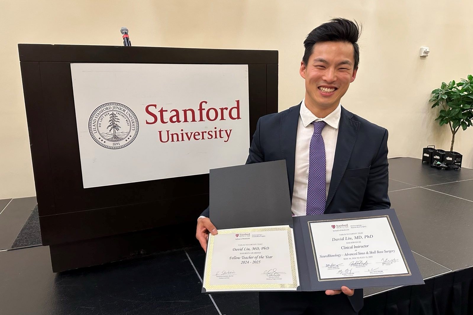 (Stanford/Wien, 20-06-2025) David Liu, Dozent für Hals‑Nasen‑Ohrenheilkunde an der MedUni Wien und derzeit als klinischer Fellow an der Stanford University (USA) tätig, wurde von Stanford als Fellow Teacher of the Year 2024-2025 gewürdigt.