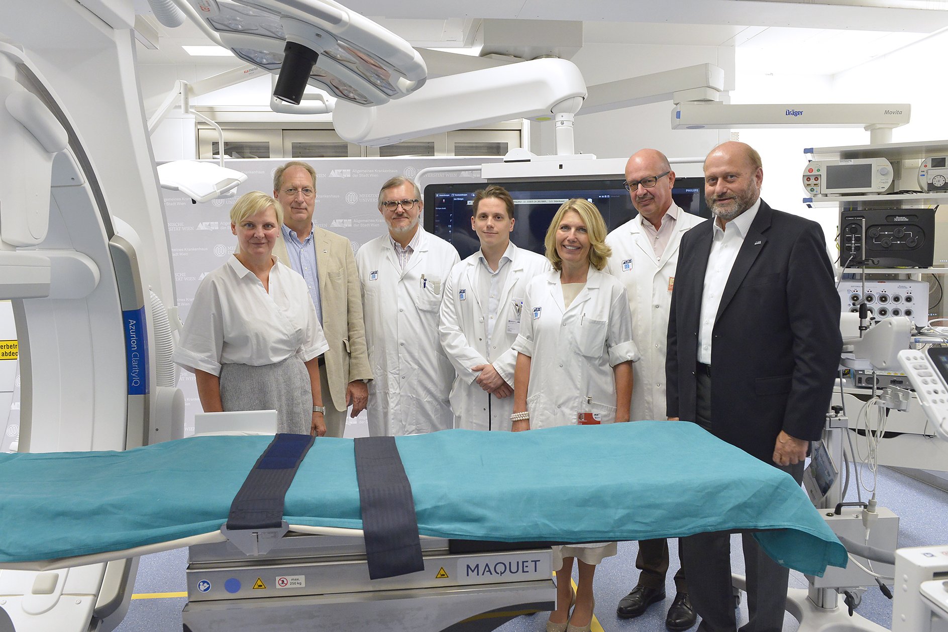 (Wien, 25-08-2017) – Rasante Entwicklungen im Bereich minimalinvasiver Eingriffe in den Fächern Kardiologie, Herz- und Gefäßchirurgie sowie Interventionelle Radiologie erfordern den vermehrten Einsatz von verschiedenen bildgebenden Verfahren, die nun direkt im OP-Saal während einer Operation verfügbar sind. Im OP-Bereich des AKH Wien steht damit eine der weltweit ersten Installationen der neuesten Angiographieanlage Azurion in einem herzchirurgischen Hybrid-OP zur Verfügung.