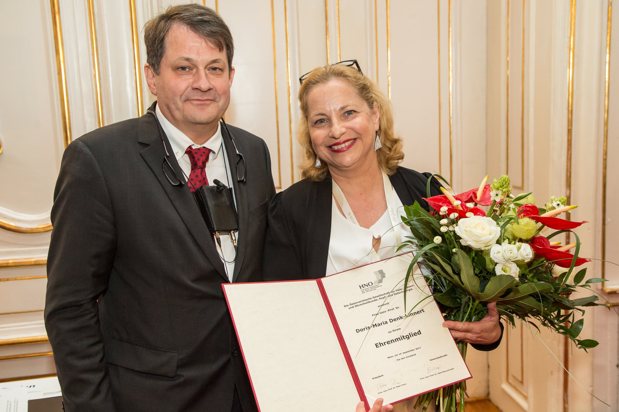 Doris-Maria Denk-Linnert mit dem Präsidenten der Österreichischen HNO-Gesellschaft Peter Franz