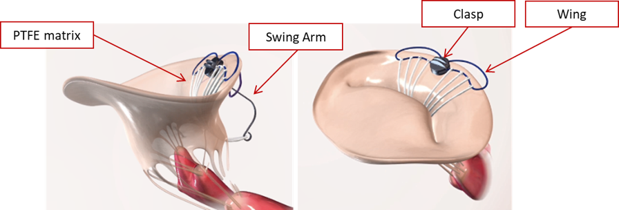 Ein weiterer wichtiger Vorteil ist der Haken, der die künstlichen Sehnenfäden aufnimmt und deshalb keine zusätzliche Fixierung am Herzmuskel notwendig ist.