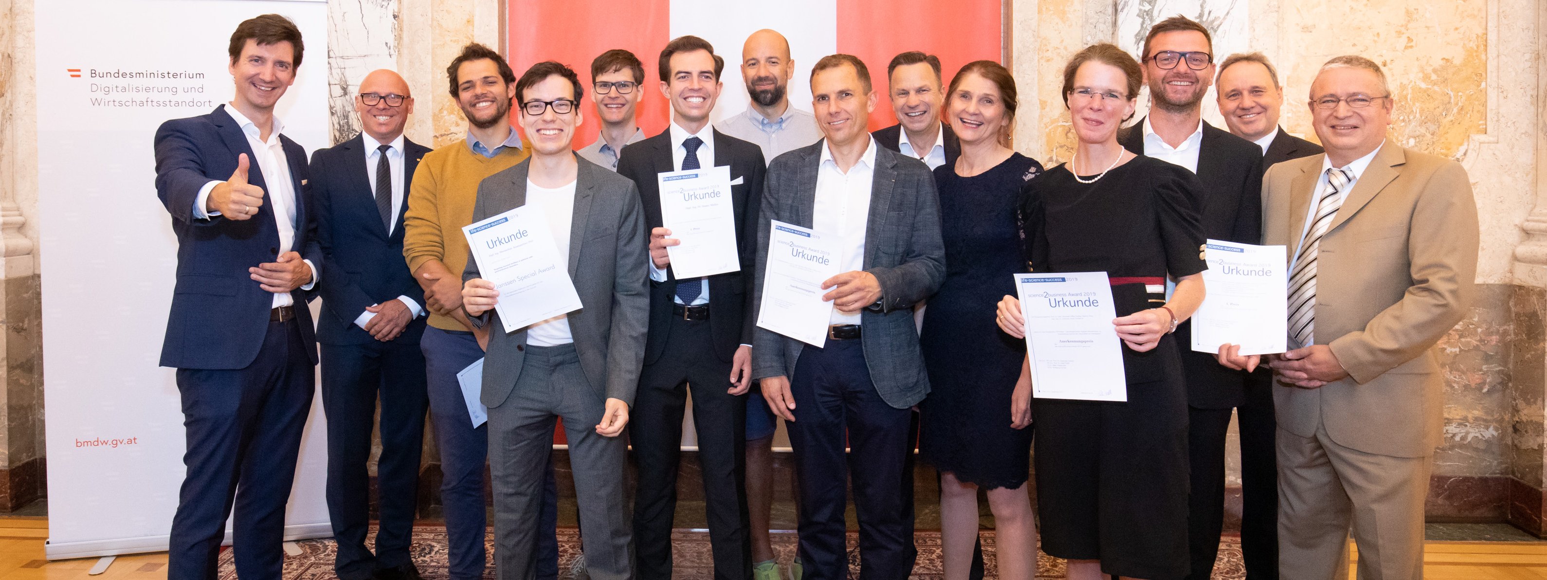 Der science2business Award wird für die besten Forschungskooperationen von Wissenschaft mit Wirtschaft vergeben. Der Fokus der Bewertung liegt dabei auf der Qualität der Umsetzung. Die Gewinner zeichnen sich somit neben der Wissenschaftlichkeit auch für ihr professionelles Management aus. Sie zeigen, dass sie Erfahrung haben, worauf es ankommt, damit eine Kooperation mit der Wirtschaft funktioniert bzw. dass sie wissen, wie man ein wissenschaftliches Ergebnis wirtschaftlich verwertet. Der science2business Award wird von life-science Karriere Services im Rahmen der life-science-success durchgeführt. Unterstützt und bereitgestellt wird der Preis vom BM f. Digitalisierung und Wirtschaftsstandort.