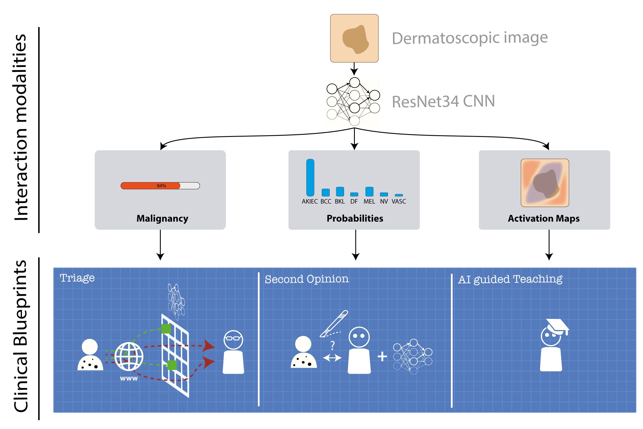 In einem weiteren Schritt konnten die Autoren zeigen, dass eine gut funktionierende KI in der Lage ist, in einem telemedizinischen Szenario gutartige Hautveränderungen herauszufiltern. Diese Maßnahme könnte die Zahl der Fälle, die von einem menschlichen Experten untersucht werden muss, deutlich verringern. In weiterer Folge konnte an Hand von realen, prospektiv erhobenen Daten demonstriert werden, dass selbst unerfahrene Untersucher mit KI-Unterstützung auf Expertenniveau telemedizinische Diagnosen stellen können. In einem abschließenden Experiment wurde auch gezeigt, dass Menschen lernen können von der KI generierte Konzepte als diagnostische Hinweise zu nutzen, um damit unabhängig von der KI ihre eigenen Fähigkeiten zu verbessern.