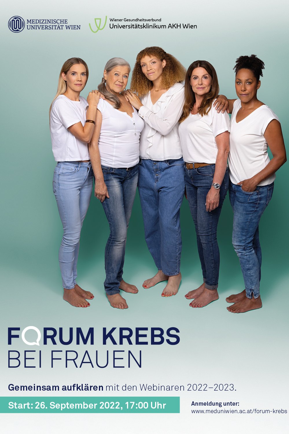 Die Webinar-Reihe startet am 26. September 2022 um 17 Uhr und informiert in insgesamt zehn Modulen über die frauenspezifischen Tumorarten Brust-, Eierstock- und Gebärmutterkrebs sowie wichtige Fragen rund um die Diagnose Krebs. Das vorläufig letzte Webinar der Reihe ist für 6. Dezember 2023 angesetzt. Die Online-Teilnahme ist nach einer Anmeldung kostenlos möglich, in allen Webinaren haben die Teilnehmer:innen Gelegenheit, Fragen zu stellen. Alle Informationen unter: www.meduniwien.ac.at/forum-krebs